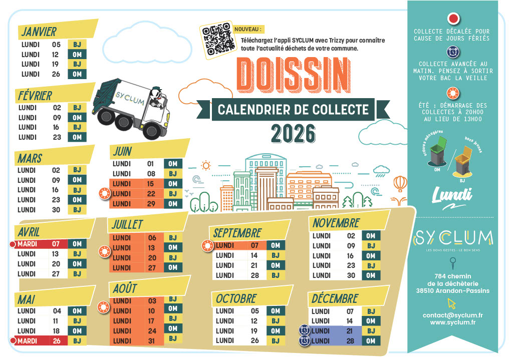 La commune de DOISSIN fait partie des 95 communes couvertes par le SYCLUM en ce qui concerne la gestion des déchets.